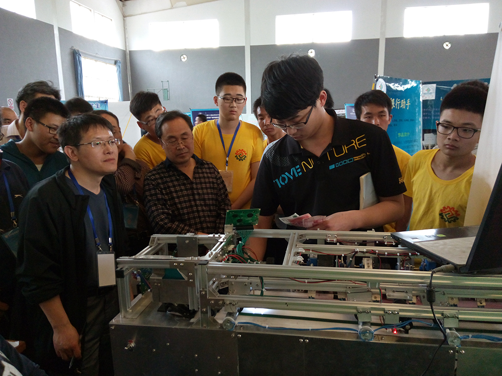 本次竞赛由山东省教育厅主办,山东理工大学、山东高校机械工程教学协作组承办。来自全省73所高校、474支创新项目团队共计约1200余名师生参赛。我院共报名7项作品,4项作品进入决赛。经过现场实物演示和PPT汇报两轮比赛,最终由曹亮、宋顺来、吕志浩、燕宝坪、邢智宝同学设计制作的《全自动纸币清分机》获得全国大学生机械创新设计大赛山东赛区决赛一等奖。由贺禹、李吉祥等同学设计制作《开心农场》和由杨蕴涵、刘瀚阳等同学设计制作《硬币分拣整理机器人》均获山东省大学生机电产品创新设计竞赛一等奖。其中,《开心农场》凭借其绿色环保、智能控制的创意,获得“科明奖学金”2000元奖励。