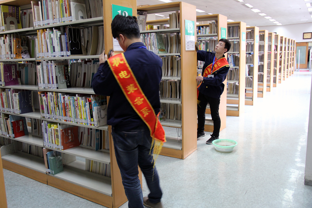 在省图书馆,志愿者们分工明确,态度认真,有的负责图书上架排列,有的负责书目分类整理,还有的负责阅览室的卫生清洁工作。三个多小时的服务活动,志愿者们认真的态度、积极的劳动得到了图书馆工作人员的一致好评,他们“不怕苦、不怕累”的志愿精神也得到了广大图书借阅者的称赞。