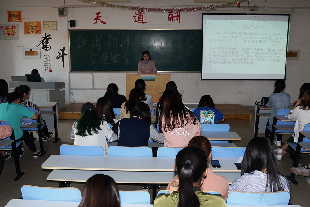 为增强女生防范意识,提高女生自我保护能力。4月18日,game36528365365举办了“女生安全知识”讲座。16、17级全体女生参加了本次讲座。